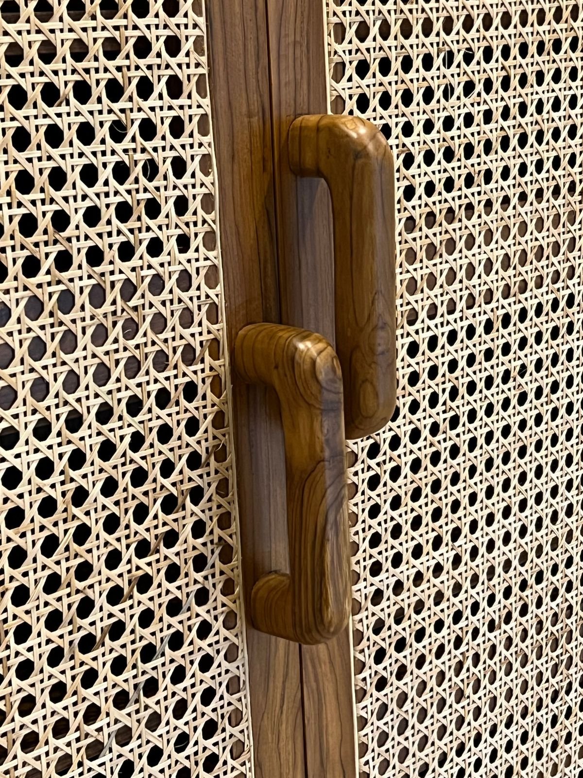 Crafted with elegance and practicality in mind, this handcrafted shoe rack is made from premium teak wood, known for its durability, strength, and beautiful natural grain. The warm wooden frame is complemented by intricately woven natural cane jali, which adds a light and refined texture to the design.