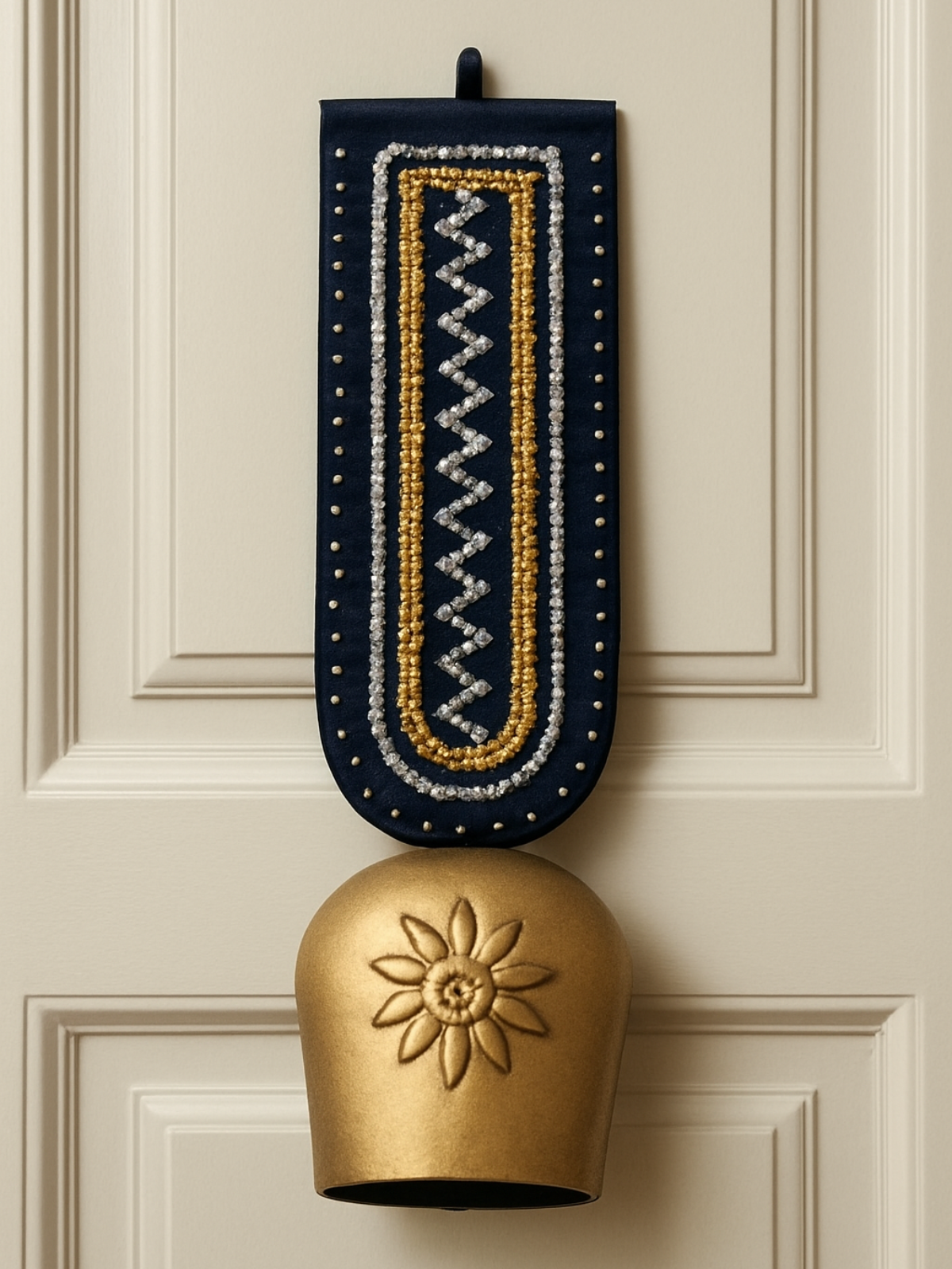 Step away from ordinary wall hangings with the Leather-Stitch Symphony – Golden Chime, a piece that truly stands out through its materials. Distinctively crafted from high-quality leather and adorned with detailed hand embroidery, this chime fuses textile art with home decor to create something special for your walls .
