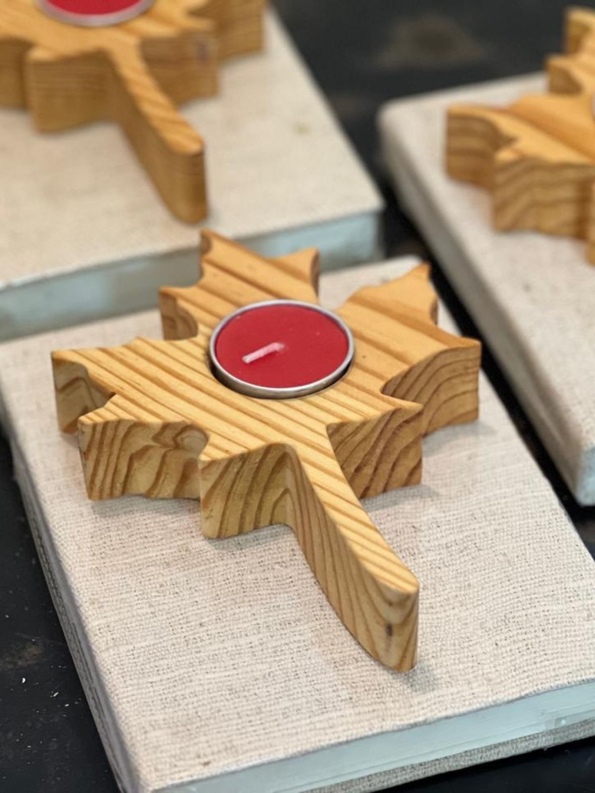 The diaries, reflecting heritage craftsmanship and understated sophistication, celebrate the beauty of traditional textiles, while the finely carved wooden maple tealight holder adds warmth and natural charm to the ensemble.